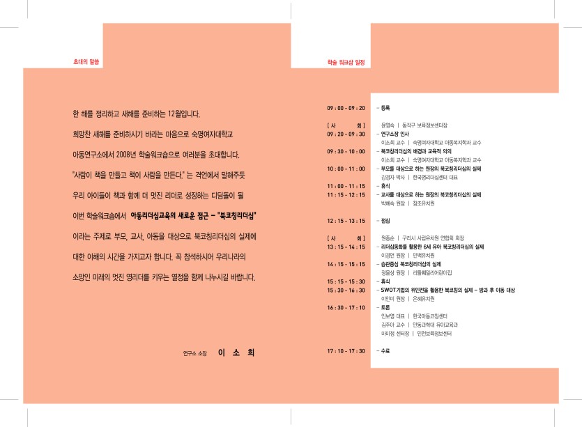 <2008년도 학술워크숍>-아동리더십교육의 새로운 접근 "북코칭리더십 "